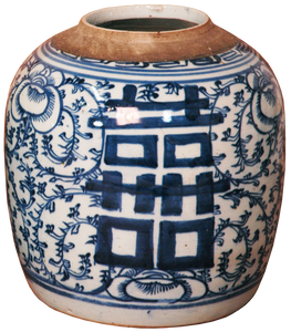 Antique Blue and White Ginger Jar with Double Happiness Design