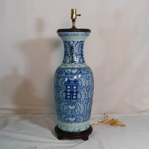 Lamp with Antique Blue and White Double Happiness Vase Base